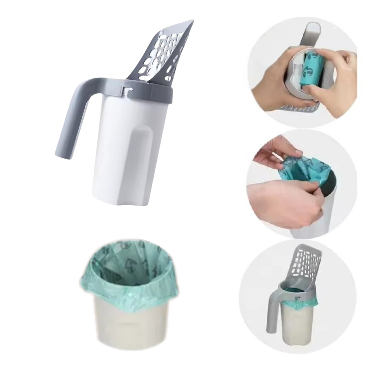 Solução 2 em 1 (Dispenser Acoplado): O grande diferencial! O suporte para saquinho é acoplado diretamente na pá. Você recolhe o dejeto, amarra o saquinho e descarta, tornando a experiência incrivelmente ágil e conveniente, tanto na caixinha de areia quanto no passeio.
